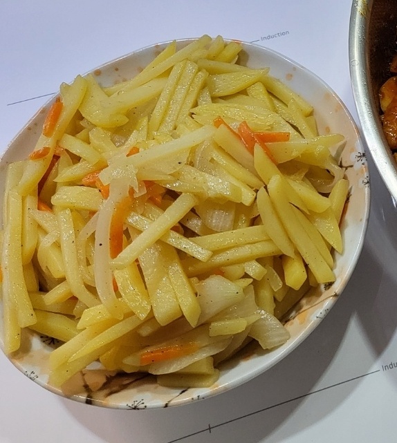 간단한 감자볶음은 부드럽고 달콤한 맛으로, 밥과 함께 먹기에 좋은 반찬입니다.