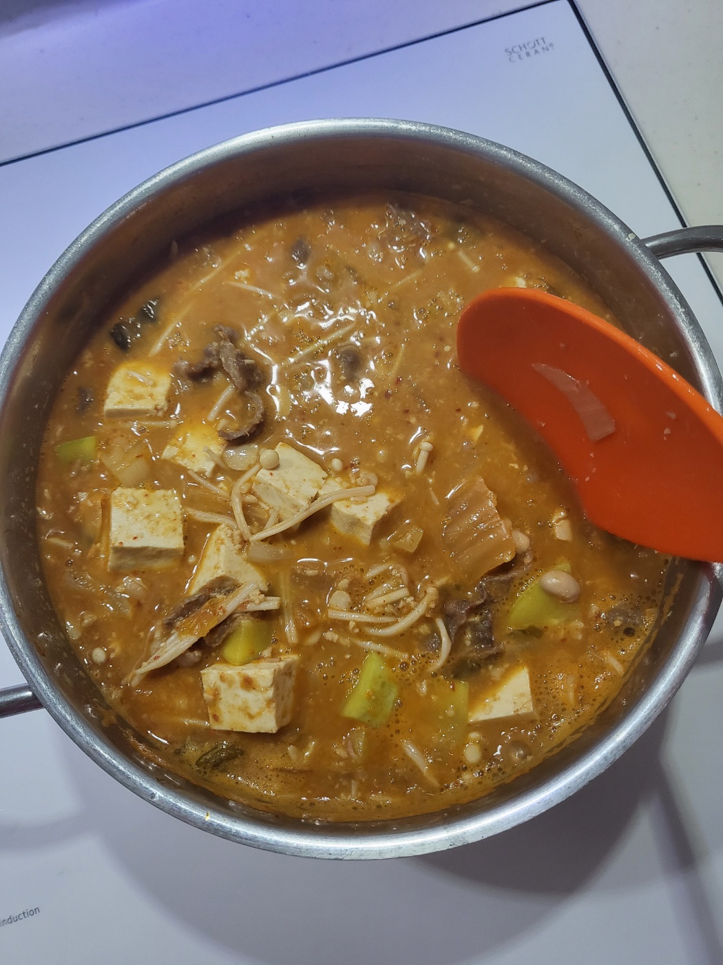 - 두부를 넣고 한소끔 더 끓입니다.